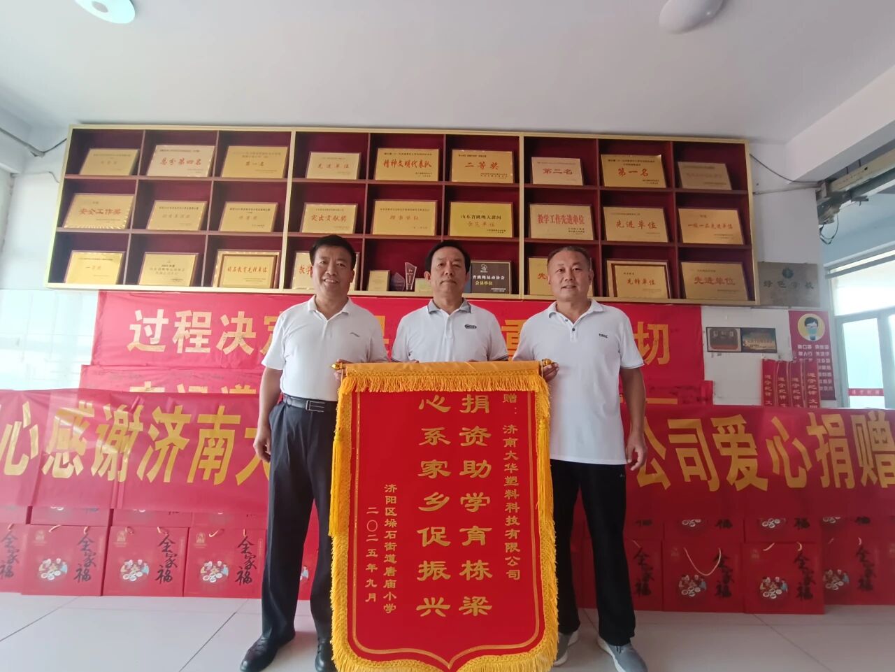 济阳区垛石街道唐庙小学党支部书记李宽山表示,感谢济南大华塑料科技有限公司对学校发展的关心和支持,公司连续三年的爱心捐赠,不仅是对教师物质上的关怀,更是精神上的鼓舞。教师们将倍加珍惜这份深情厚谊,努力工作,不断提高教学质量,以实际行动回报社会各界的关心和支持。